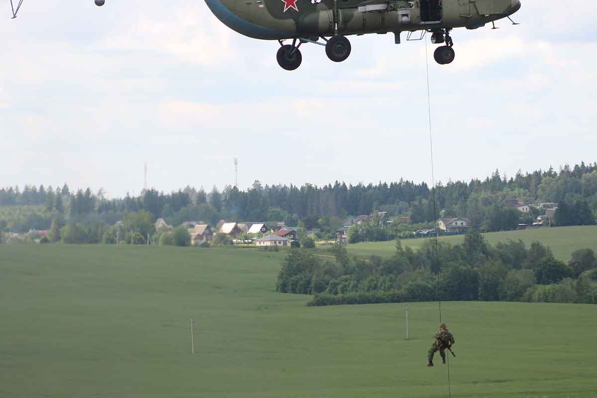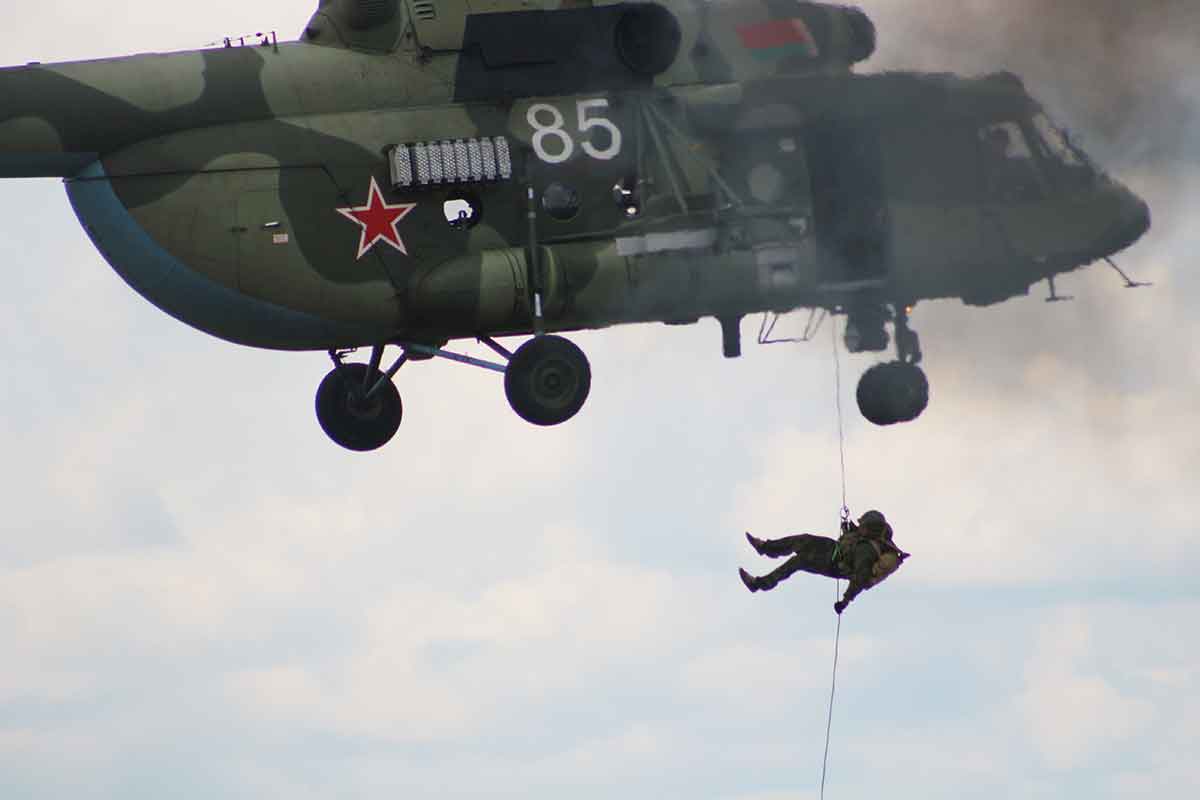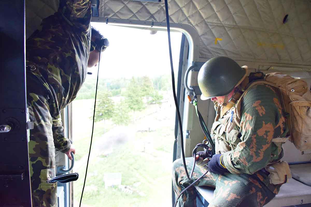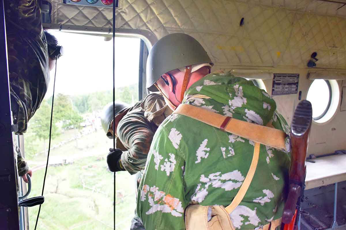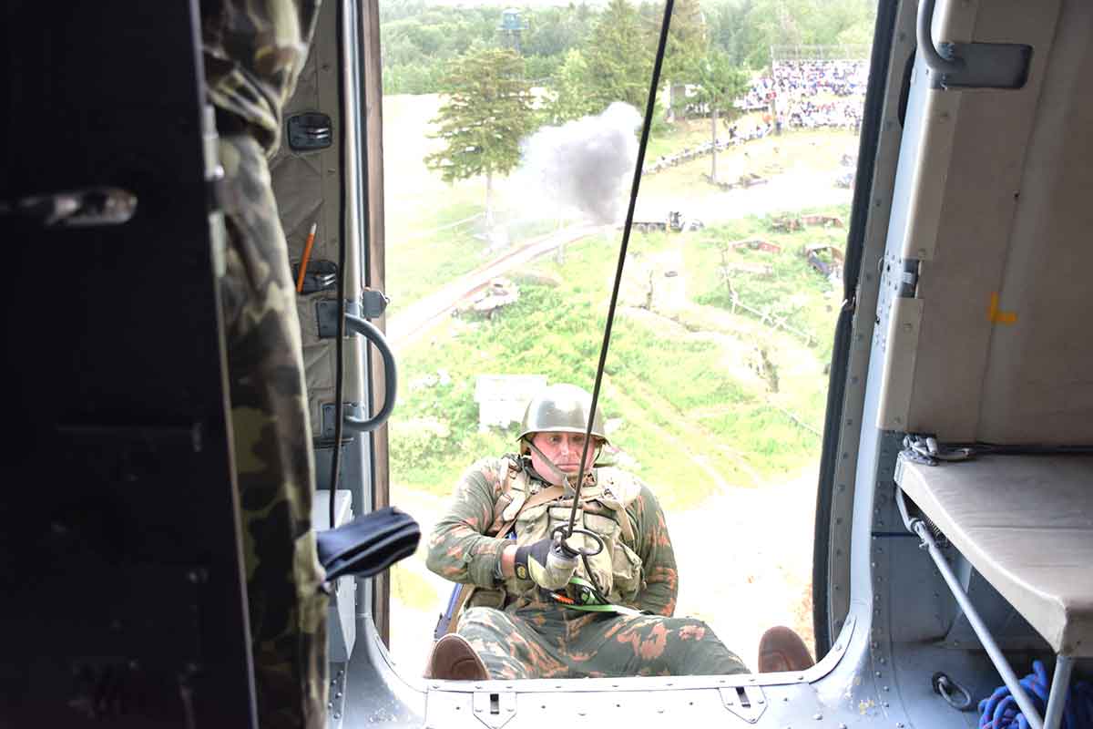В 14:00 началась реконструкция боя Афганской войны, особенностью которой было участие вертолёта Ми-8 и десантирование с него.