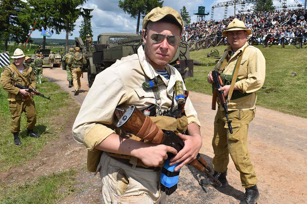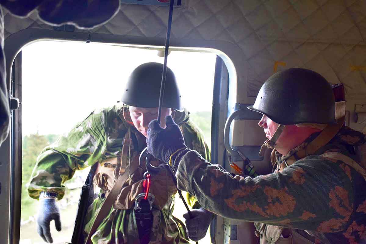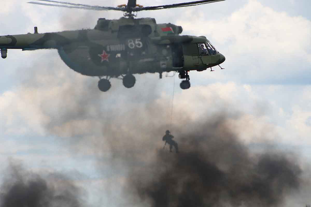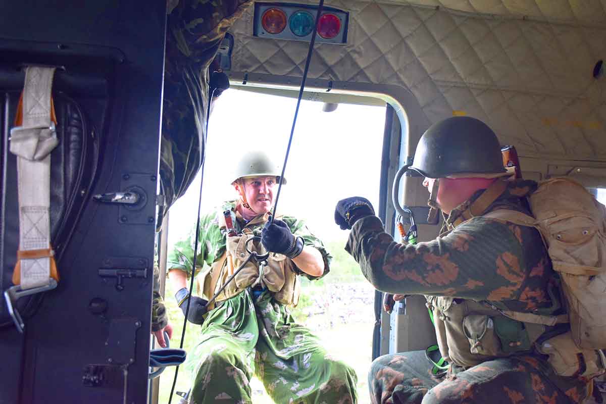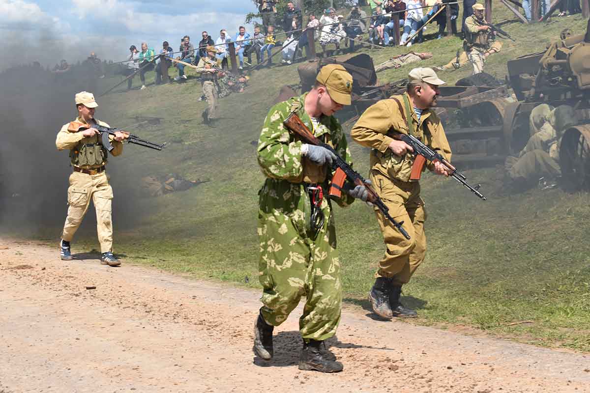 В 14:00 началась реконструкция боя Афганской войны, особенностью которой было участие вертолёта Ми-8 и десантирование с него.
