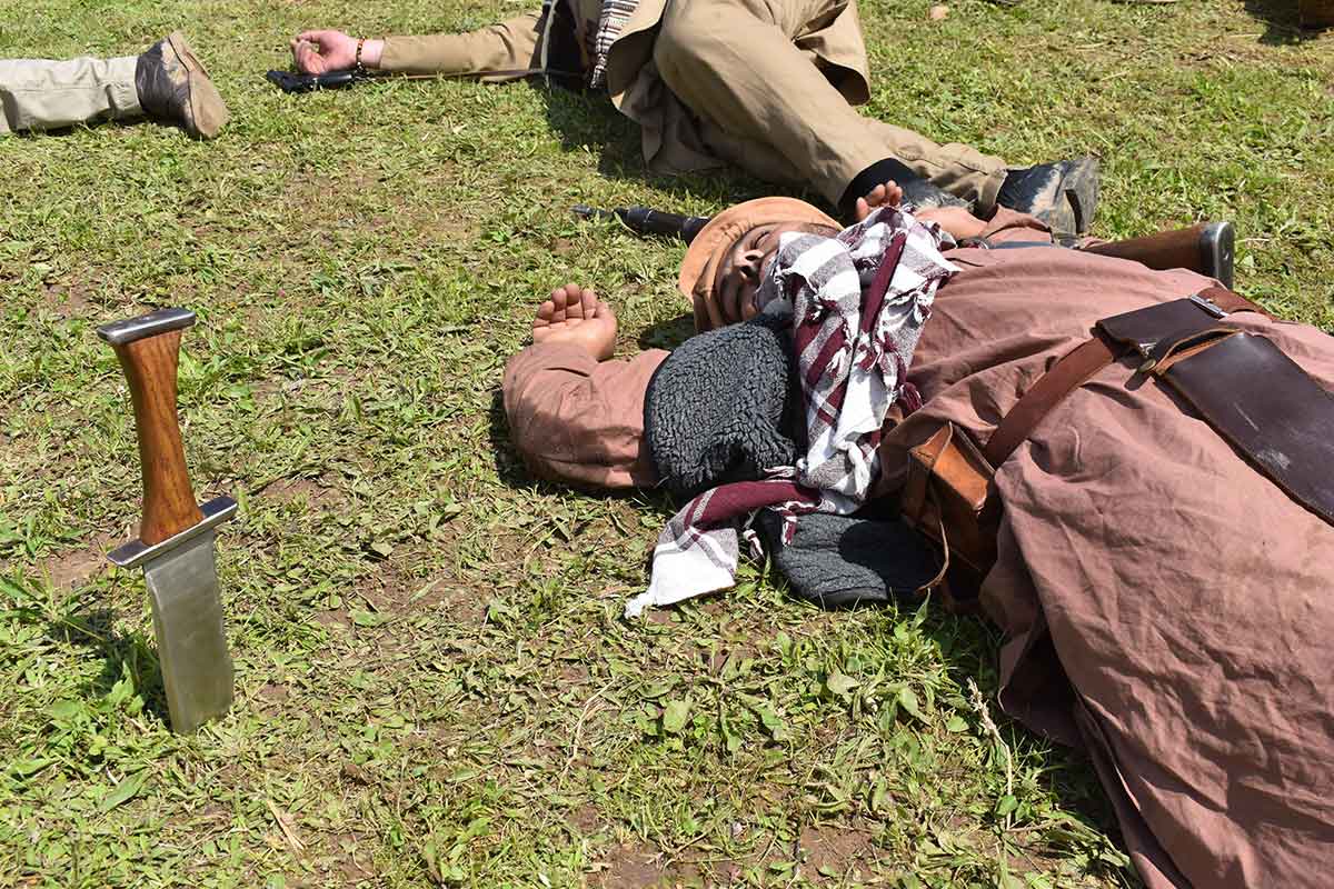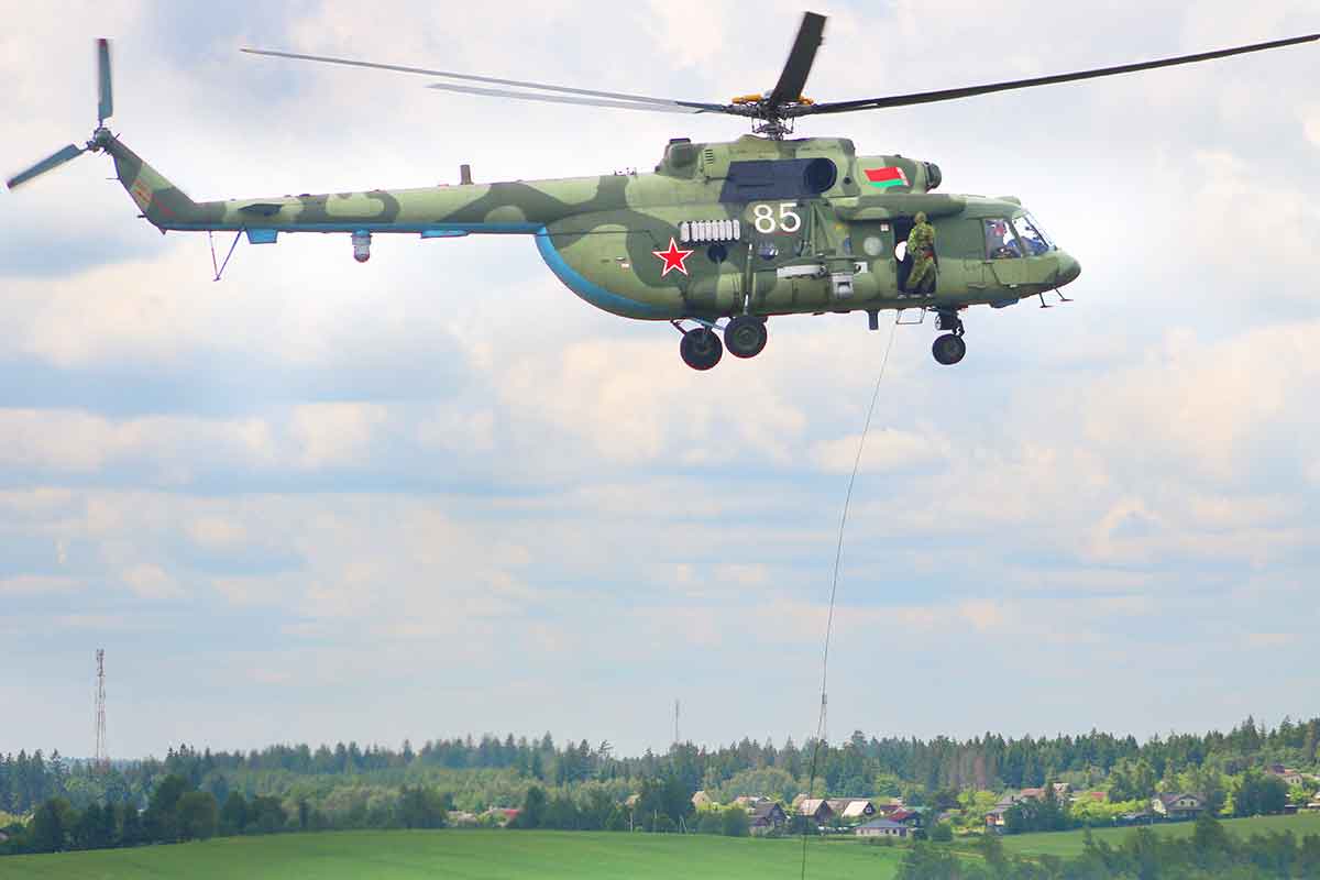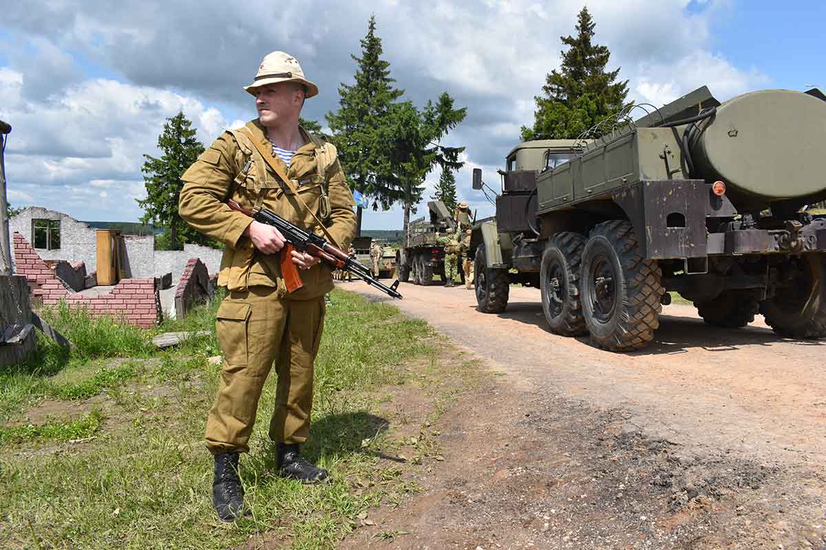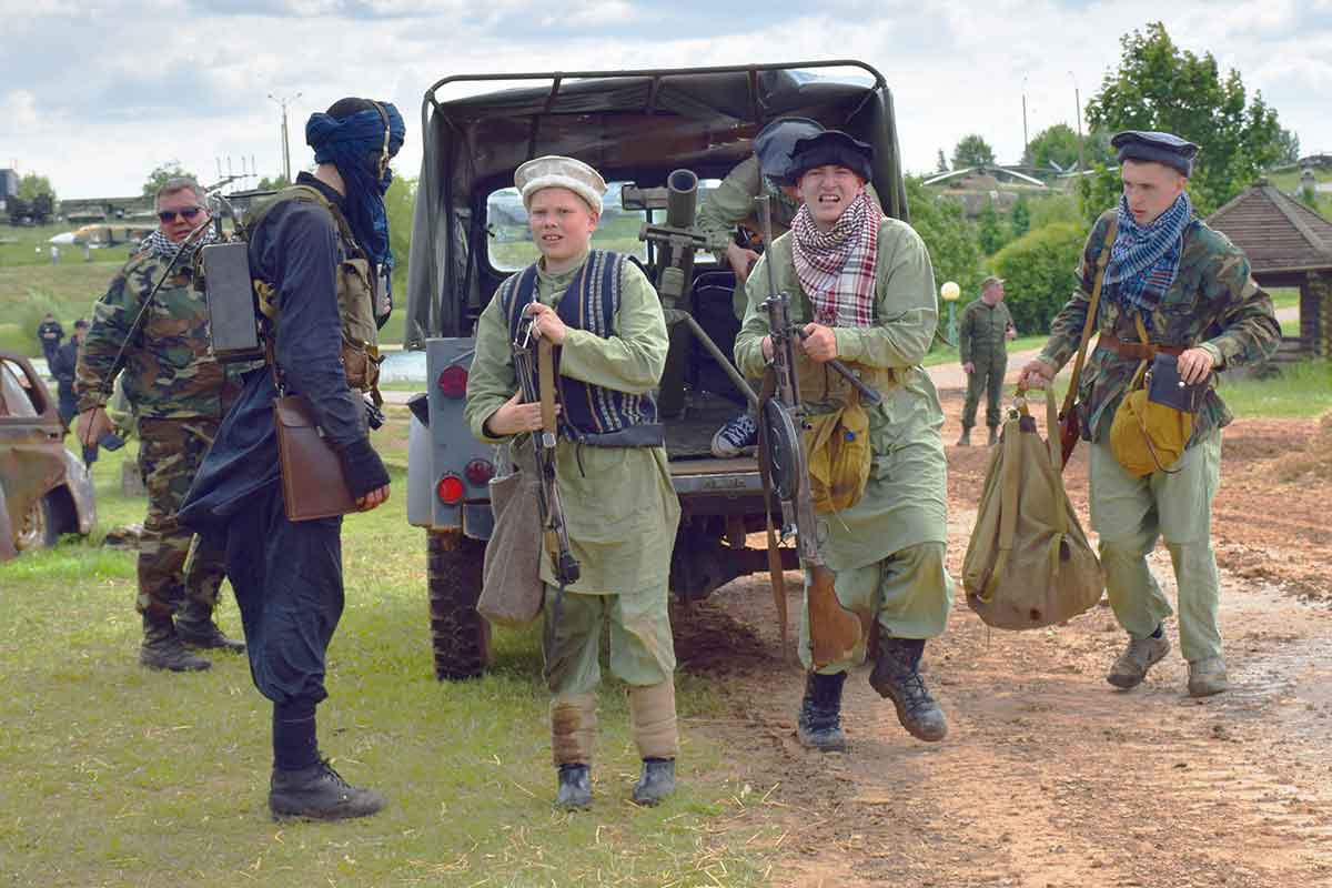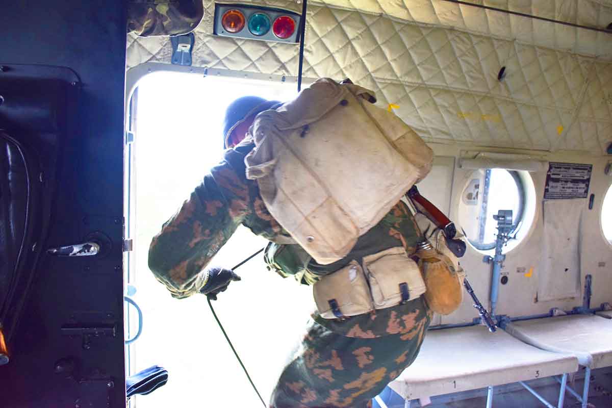 В 14:00 началась реконструкция боя Афганской войны, особенностью которой было участие вертолёта Ми-8 и десантирование с него.
