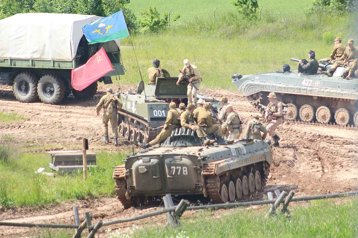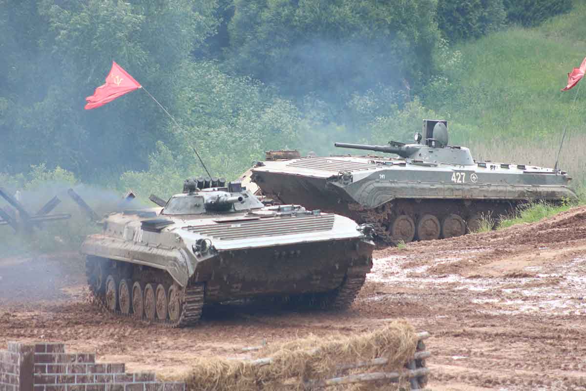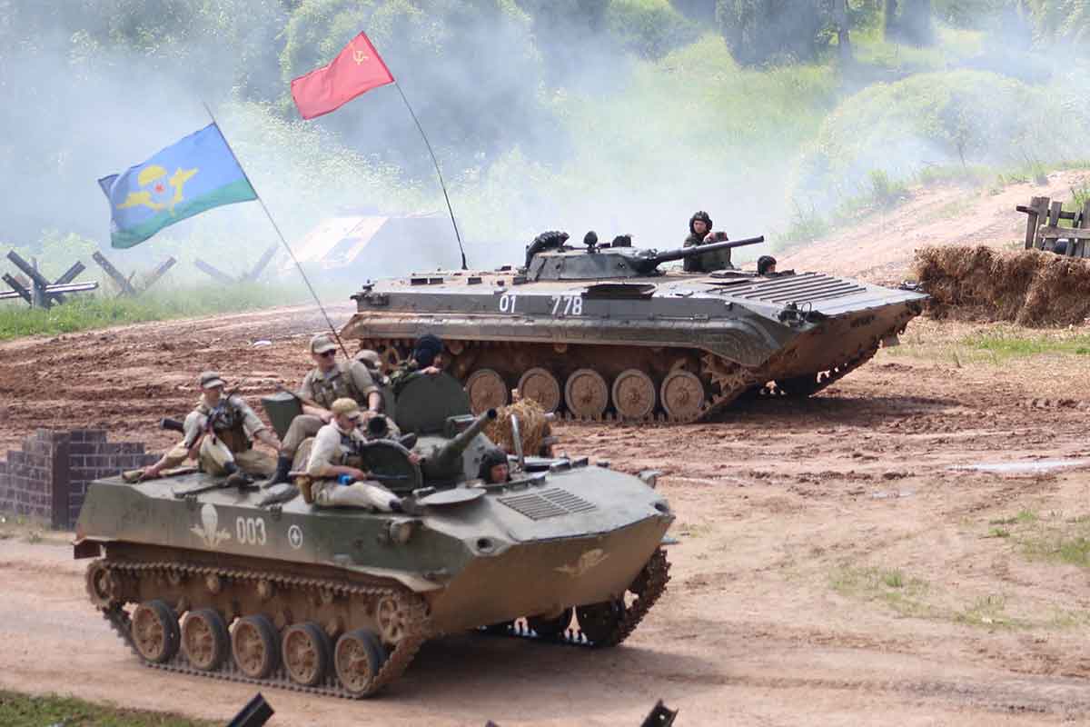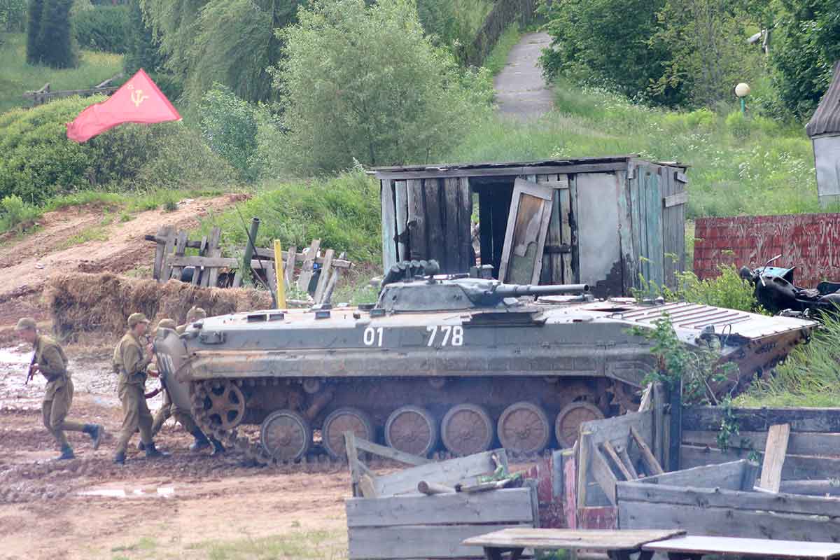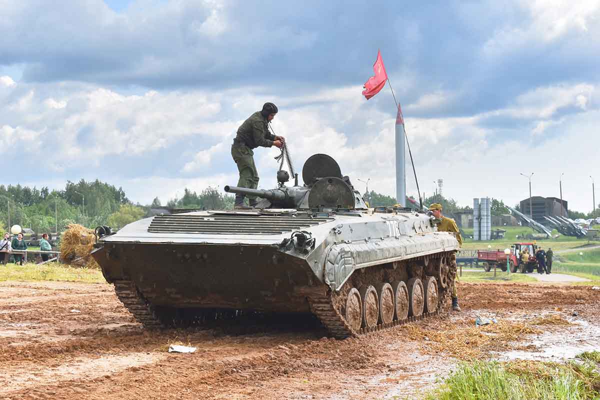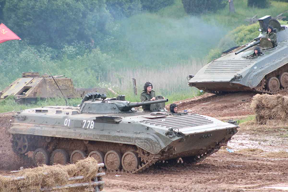 После реконструкции боя состоялся показательный заезд сразу двух БМП-1 с экипажами.