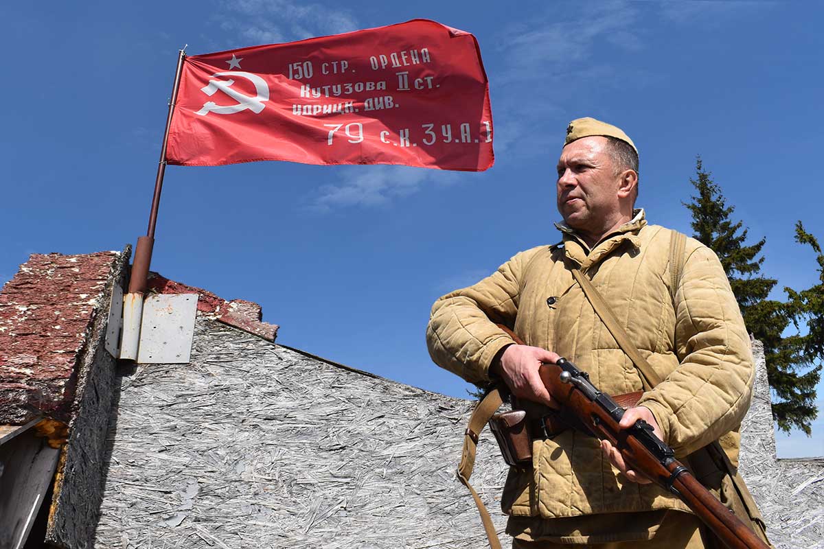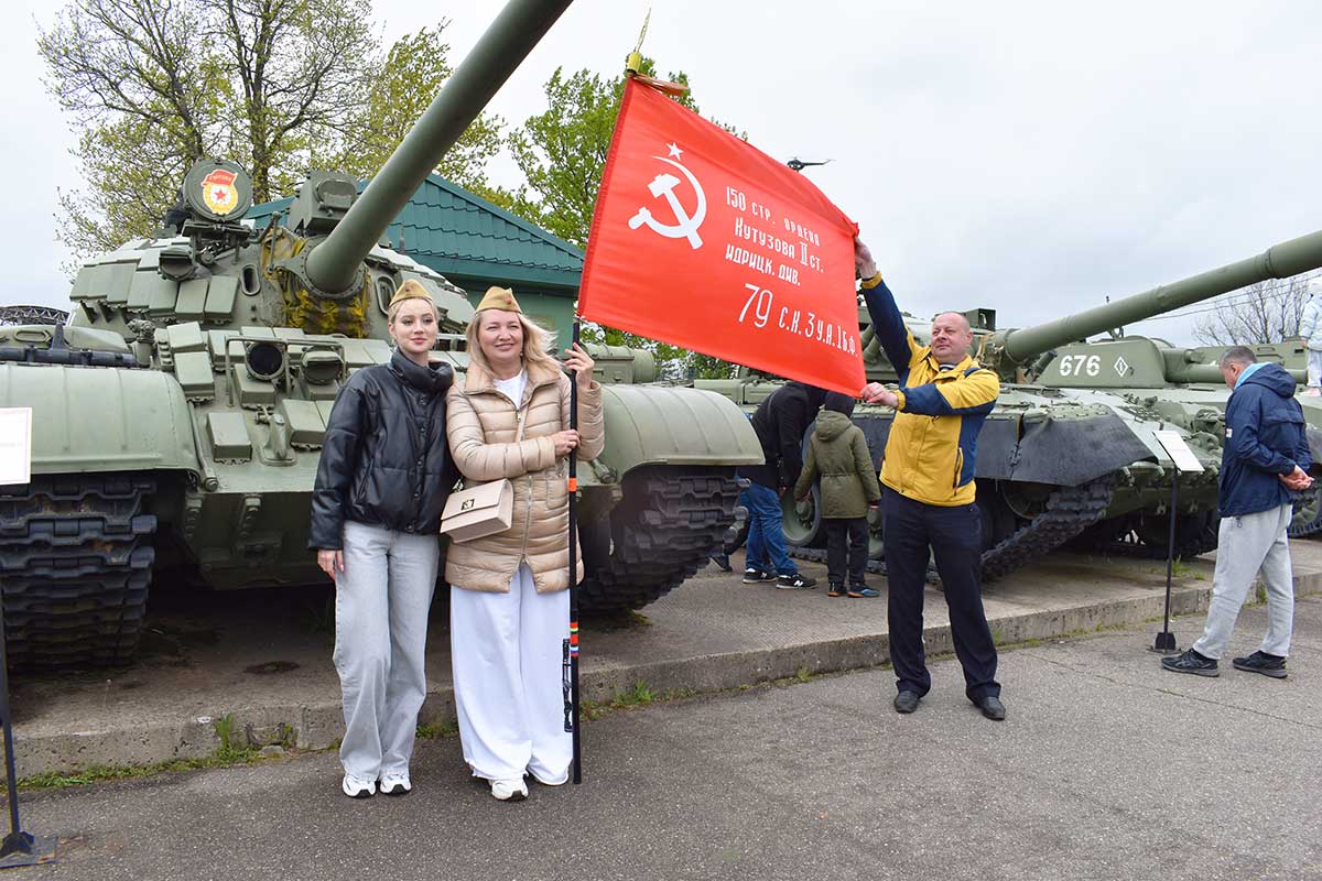 В течение 9 и 10 мая посетители активно фотографировались с реконструкторами и со Знаменем Победы.