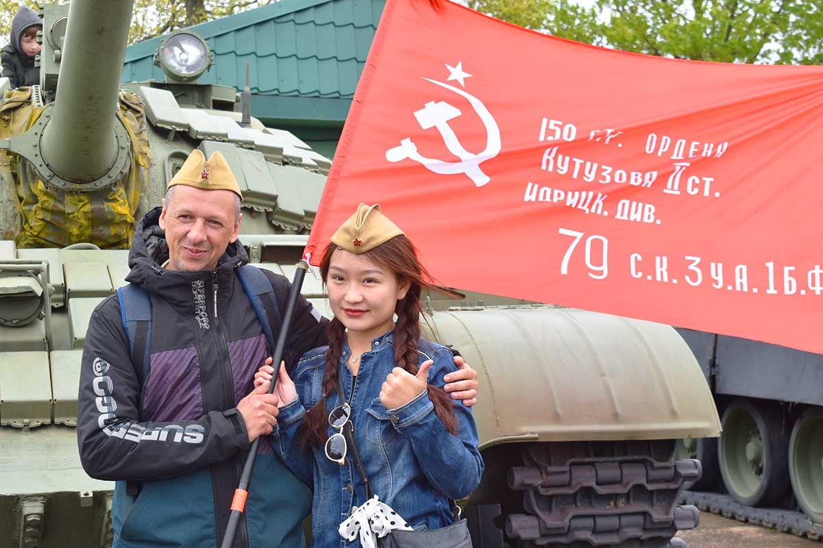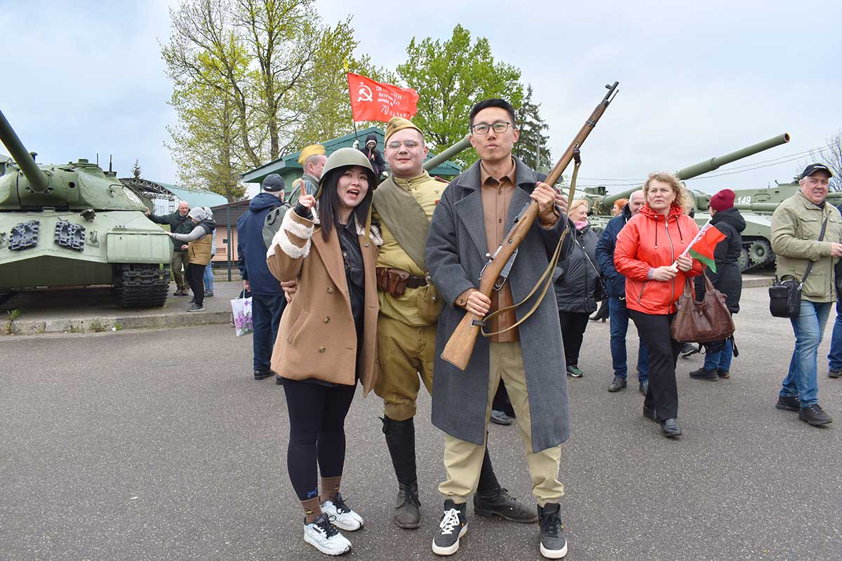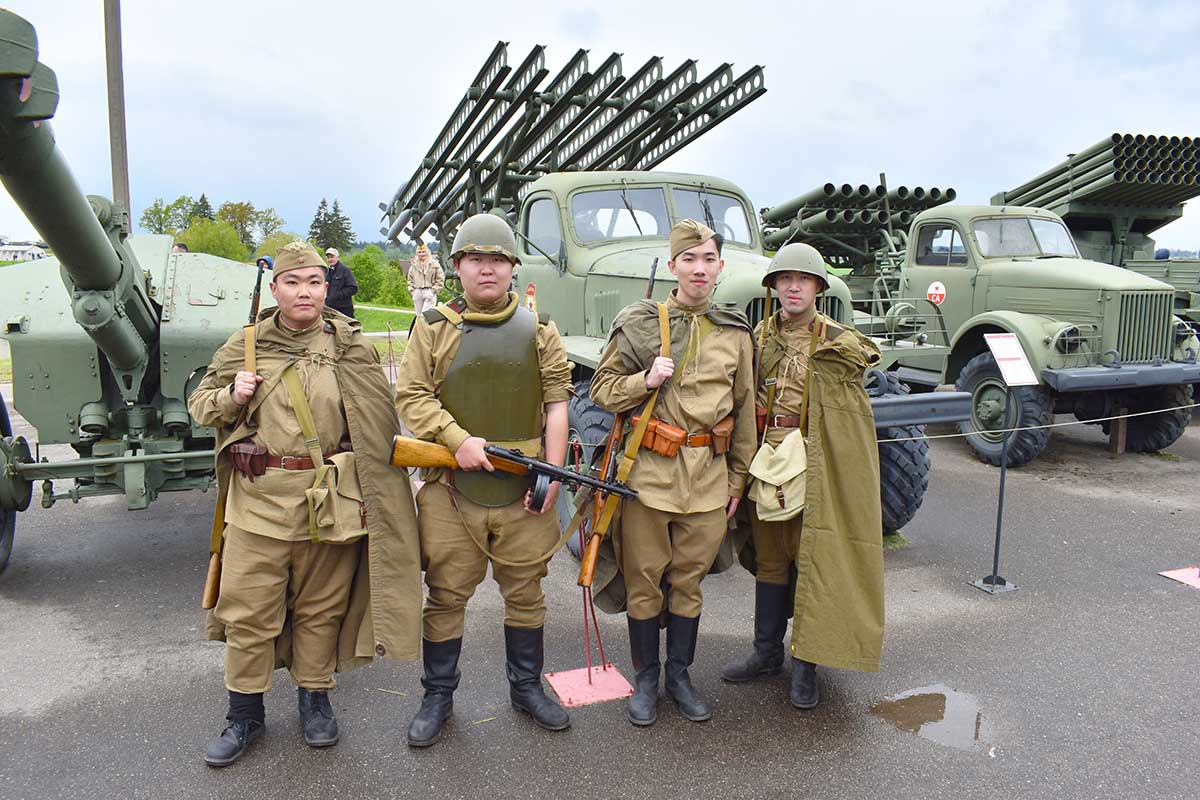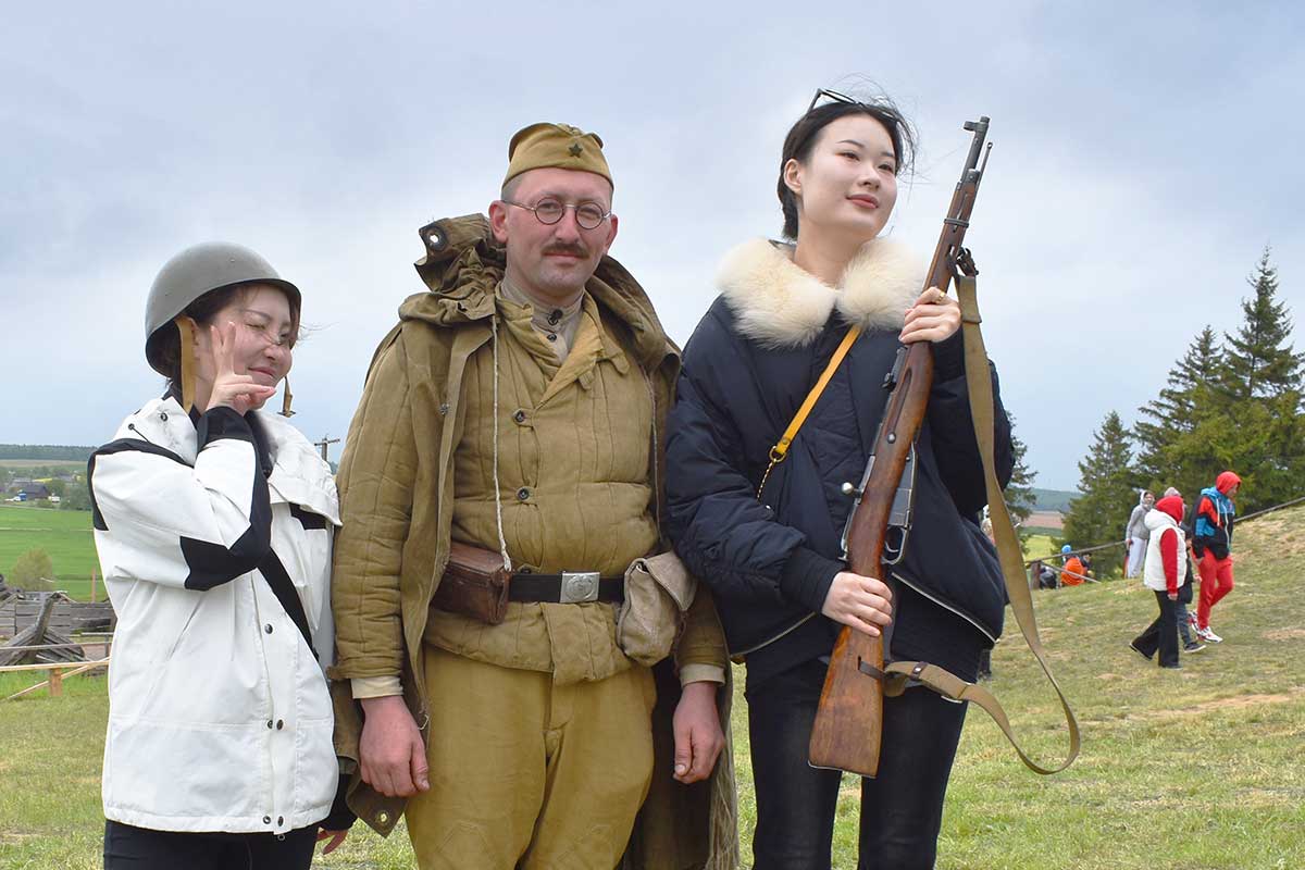 В эти дни наш комплекс посетили гости не только из России, Беларуси и Китая, но и из Германии, Испании, Канады, Латвии, Литвы, Польши и Эстонии. Был среди них и уроженец Ирана – Амир Хоссейн со своей очаровательной супругой Викторией. Амир бесплатно снял и смонтировал для нашего комплекса несколько видеороликов с реконструкций боёв Великой Отечественной и Афганской войн, которые в течение года демонстрируются в кафе «Линии Сталина», а Виктория – видеоролик полёта над нашим комплексом на вертолёте Ми-2.